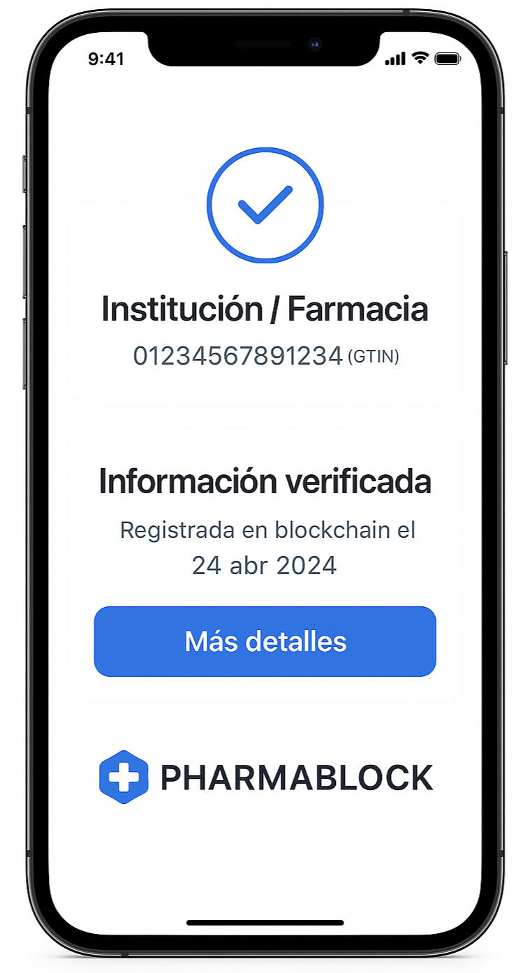 PharmaBlock transforma tu trazabilidad interna en una experiencia clara y verificable para tus clientes. Moderniza tu farmacia, refuerza tu imagen y genera confianza sin cambiar tu forma de trabajar.Verificación instantánea con el móvilCompatible con el Datamatrix actualHistórico completo por producto